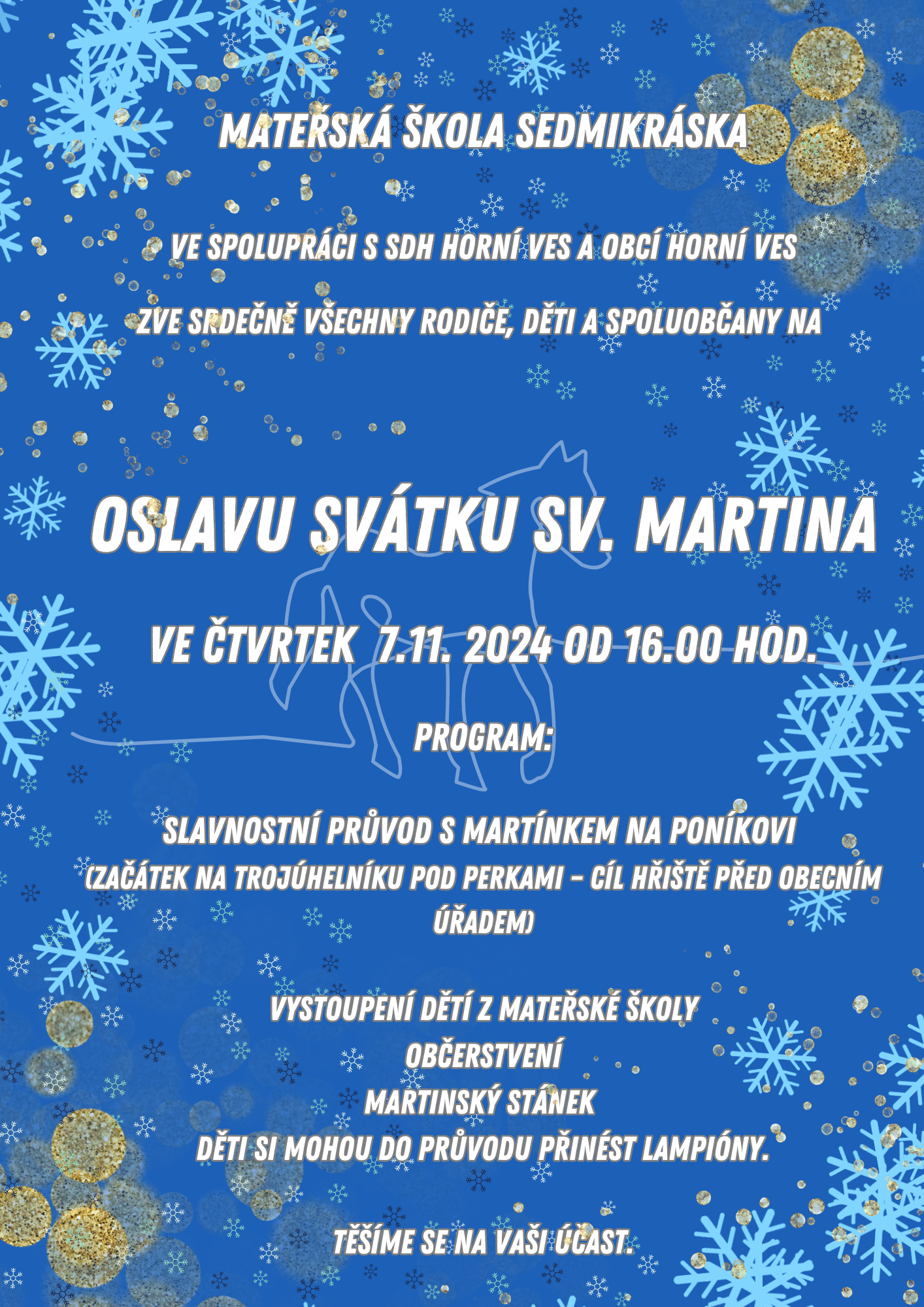 Mateřská škola +420 565 381 027 sedmikraskahornives@gmail.com Ředitelka mateřské školy Mgr. Marta Stoklasová +420 603 278 467